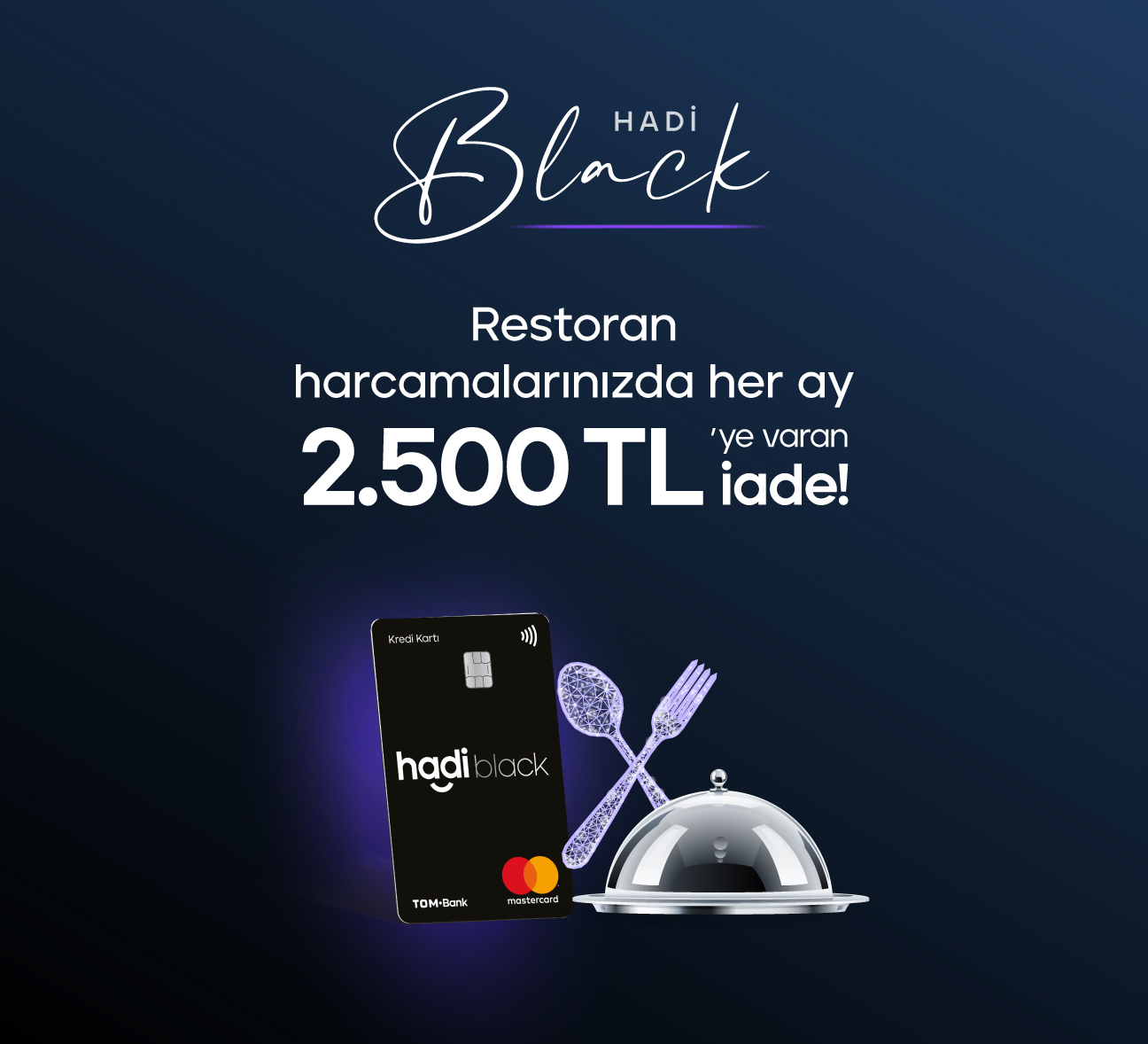 Hadi Black müşterisi olarak 3.500 TL üzeri restoran harcamalarınızda %7,5 iade ile her ay toplam 2.500 TL’ye varan iade kazanmanız mümkün!