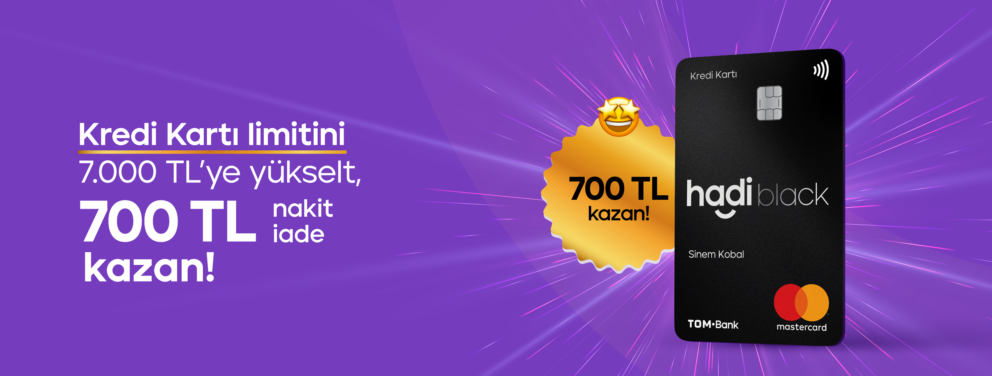 Hemen Hadi kredi kartı limitini yükselt, kredi kartına 700 TL kazan!