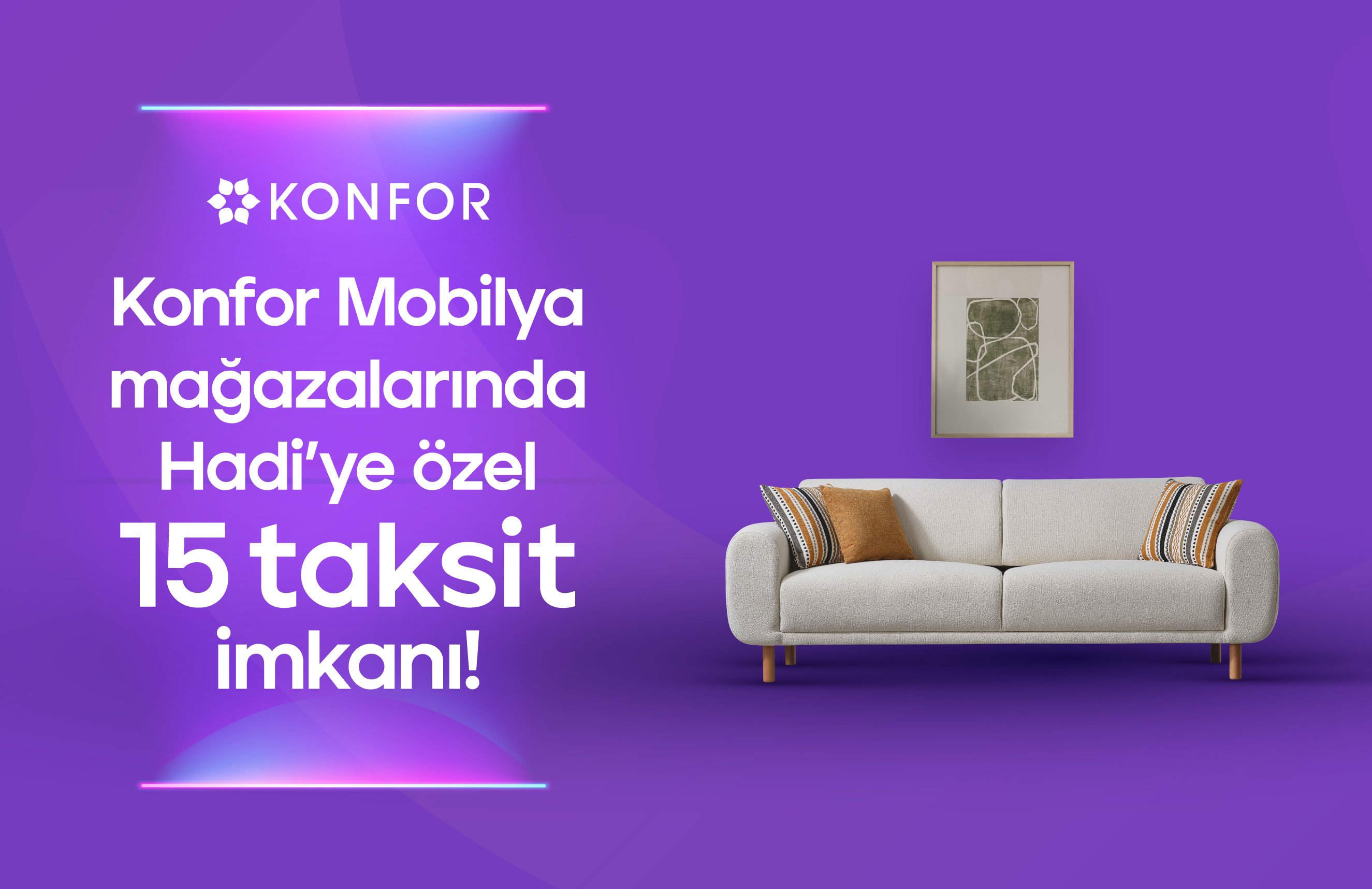 31.12.2026'ya kadar Hadi Mağazadan Alışveriş kredisi ile anlaşmalı Konfor mobilya mağazalarından yapacağın mobilya alışverişlerinde 15 taksit fırsatı seni bekliyor!