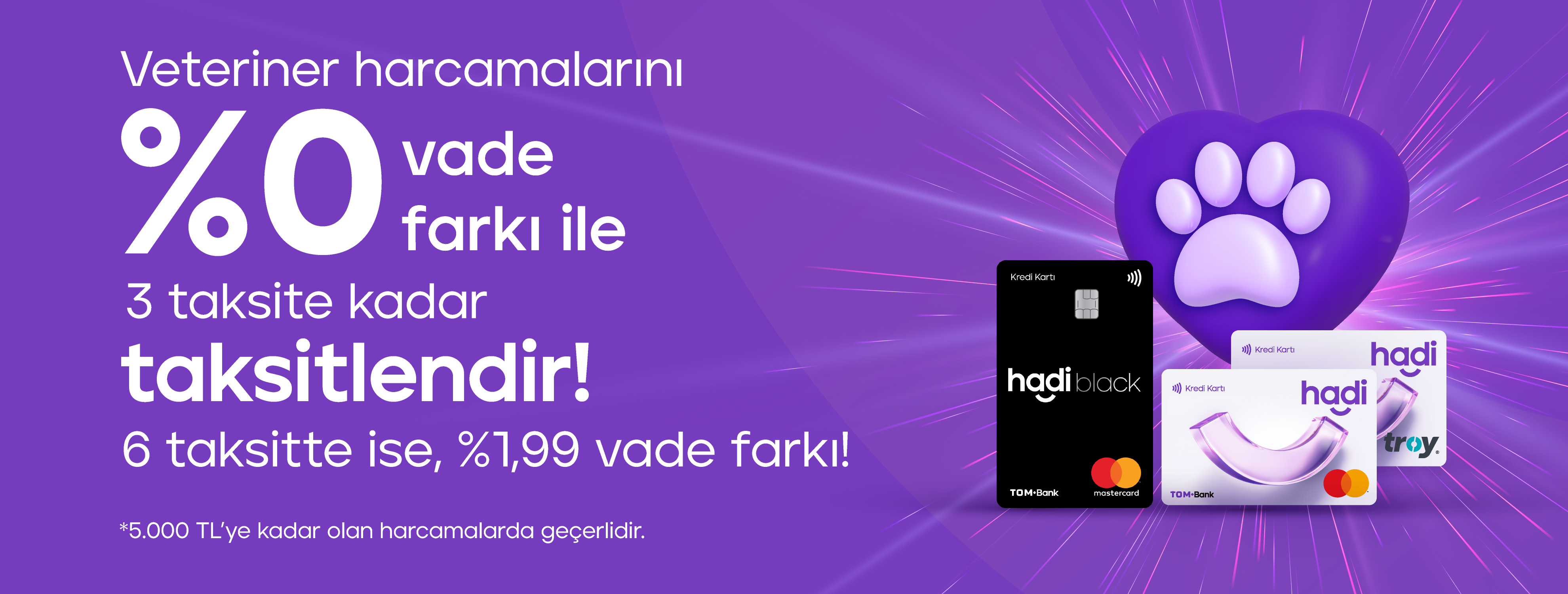 - Kampanya, 30 Nisan 2026 tarihine kadar, Hadi Kredi Kartı ve Hadi Black Kredi Kartı ile yapılan 5.000 TL’ye kadar olan veteriner harcamaları için geçerlidir.