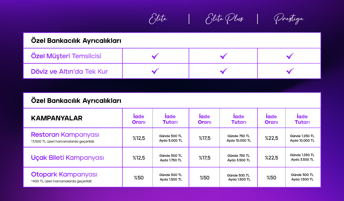 - 7.5 Milyon TL ile 15 Milyon TL arasındaysa Özel Bankacılık Elite Plus,
