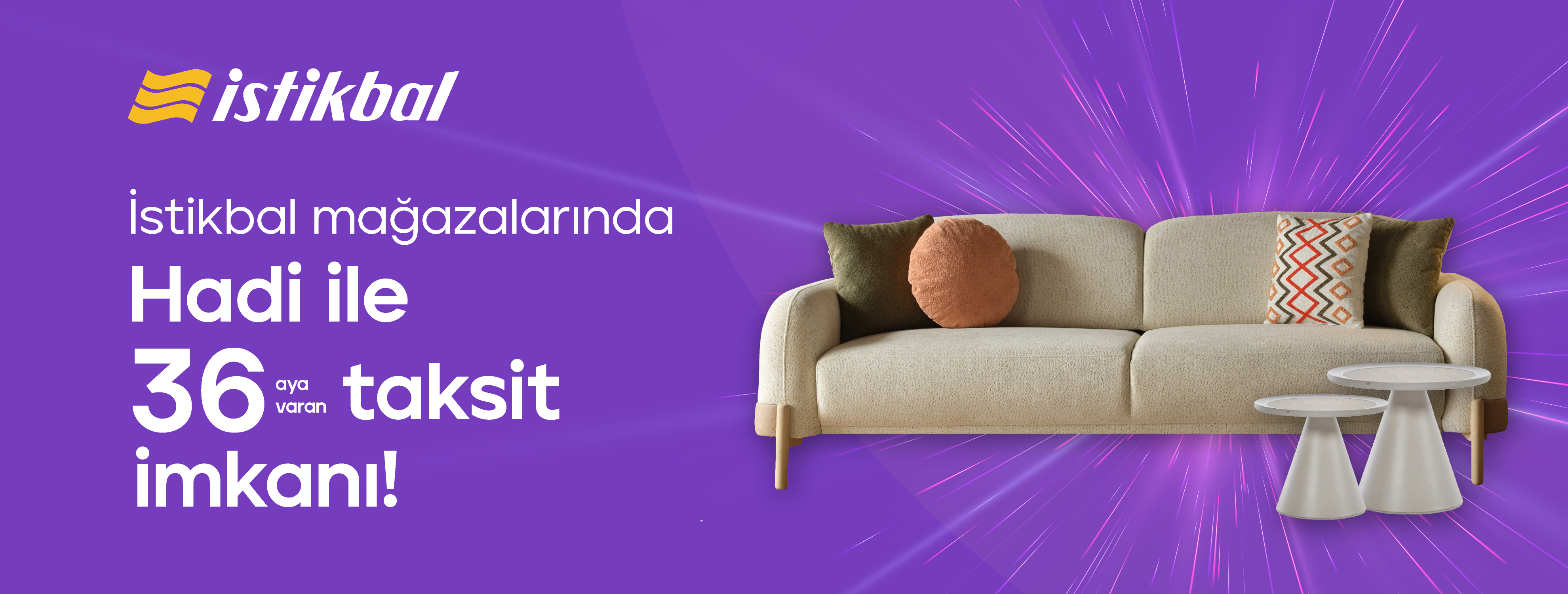 31.12.2026'ya kadar Hadi Taksitli Alışveriş Kredisi ile anlaşmalı İstikbal mobilya mağazalarından yapacağın mobilya alışverişlerinde 36 aya varan taksit fırsatı seni bekliyor!